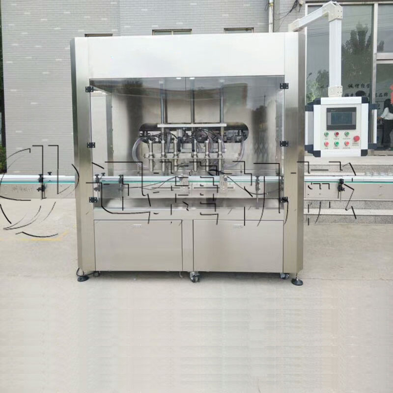 全自動(dòng)辣椒醬六頭灌裝機(jī)作為公司新研發(fā)的灌裝設(shè)備在市場(chǎng)上起到了關(guān)鍵性的作用,是集光,機(jī),電,氣于一體,采用活塞式定量原理,灌裝精度高,操作簡(jiǎn)單