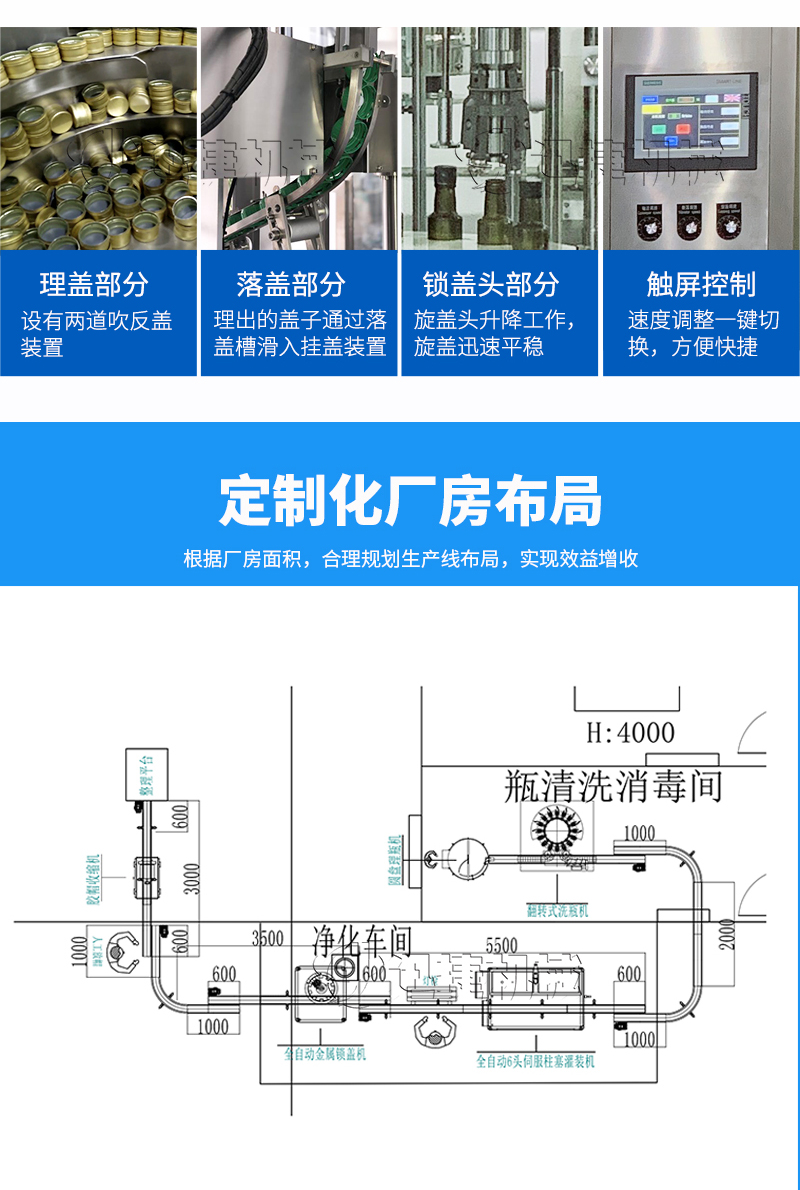 本設(shè)備適用于醫(yī)藥、農(nóng)藥、食品、化妝品、化工等行業(yè),主要針對(duì)各種玻璃瓶口的金屬防盜蓋、鋁封蓋的封口、壓螺紋等。該設(shè)備可單機(jī)使用,也可以與灌裝機(jī)等設(shè)備組成生產(chǎn)流水線自動(dòng)作業(yè);