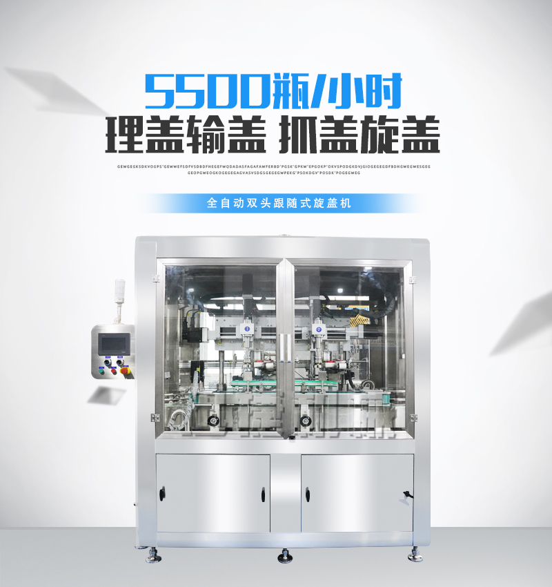 全自動(dòng)雙頭跟隨式旋蓋機(jī)由理蓋輸蓋機(jī)構(gòu)、抓蓋旋蓋機(jī)構(gòu)、運(yùn)動(dòng)模塊、輸送機(jī)構(gòu)及控制系統(tǒng)組成。整機(jī)結(jié)構(gòu)簡(jiǎn)單、調(diào)整方便。