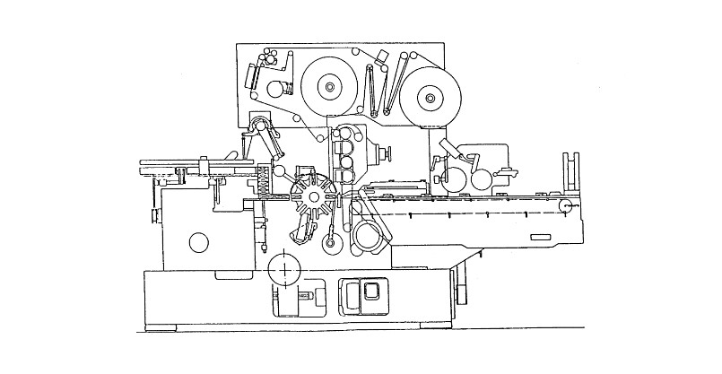 (二)機械傳動 401型小包薄膜包裝機由立勵磁的直流分路繞線式電機提供驅(qū)動力。主電機 (2)通過定時皮帶 (3)帶動主傳動軸 (1),主傳動軸 (1)將動力分配成5路。 主傳動軸上的齒輪系 (10)傳動軸 (15),軸 (15)通過傘齒輪體 (12)帶動定時皮帶 (11)。定時皮帶 (11)驅(qū)動分離輪 (13)和傳送輪 (14)2路 ,主傳動軸上的錐齒輪副 (8)帶動偏心圓盤 (16)和連桿 (17),拖動行走架 (18)和輸人推送器 (19)作往復(fù)直線運動。