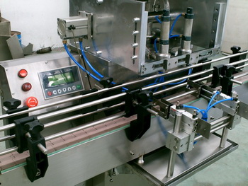 本機與物料接觸均為不銹鋼制作,完全符合GMP標準。快速活接連接,拆洗方便,灌裝量、灌裝速度均可調(diào)節(jié),更 換不同規(guī)格形狀的瓶子,不需更換零件,調(diào)整容易。另灌裝頭設有防滴漏裝置,灌裝無拉絲、滴漏;有瓶灌裝、無瓶不灌裝;設有計數(shù)功能,能準確顯示當前產(chǎn)量、 前班產(chǎn)量;并備有自動加料控制接口,實現(xiàn)對加料的自動控制。各動作平穩(wěn)、準確無誤,是目前較為理想的機電氣一體化產(chǎn)品。(該設備需要配備輔助設備:真空泵,真空儲氣罐)