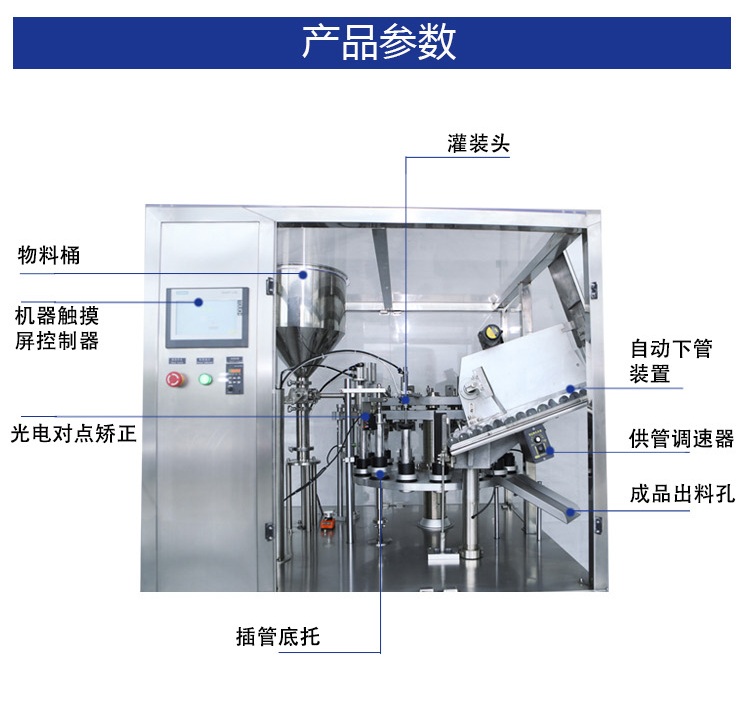 軟管灌裝封尾機(jī)適用于醫(yī)藥、食品、化妝品、日用化工用品等行業(yè)的塑管、鋁塑復(fù)合管灌裝封尾。軟管灌裝封尾機(jī)可將各種糊狀